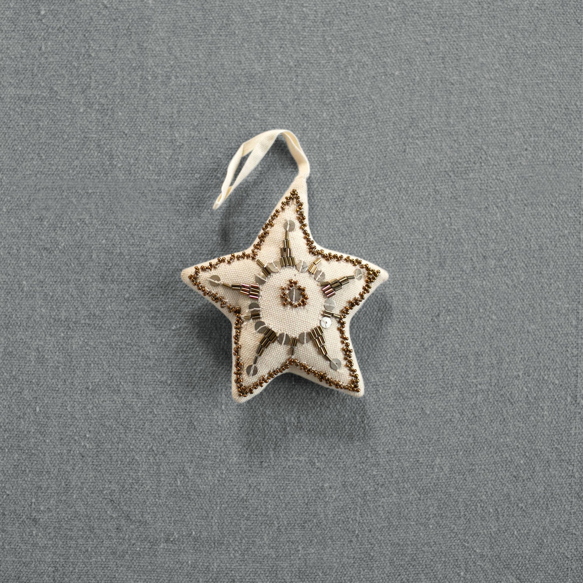 Kansas Star, Natural, Cotton filled Ornament, Embroidered